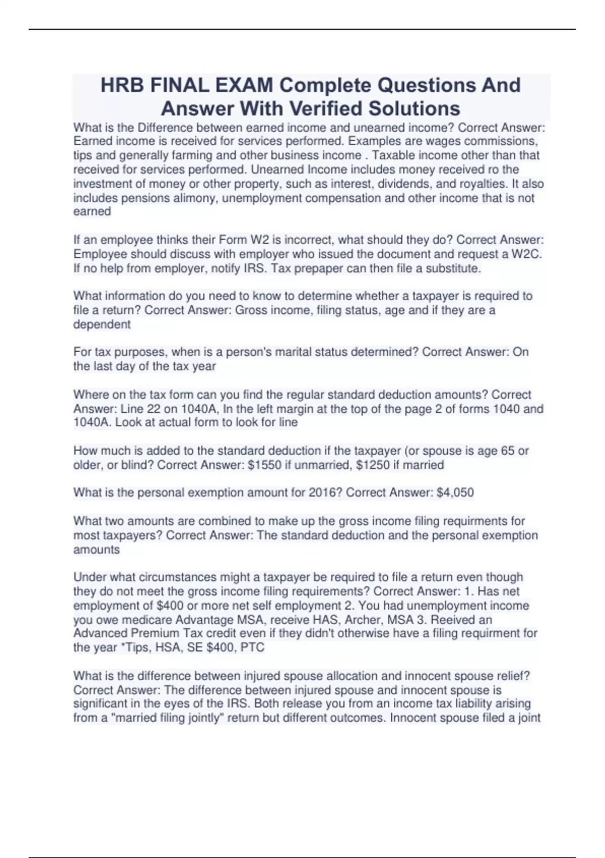 HRB FINAL EXAM Complete Questions And Answer With Verified Solutions HRB FINAL EXAM Complete Questions And Answer With Verified Solutions