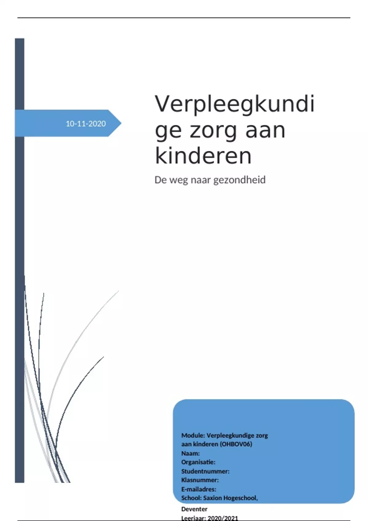 Dit beroepsproduct is tot stand gekomen als opdracht voor de module ‘Verpleegkundige zorg aan kinderen’ en is