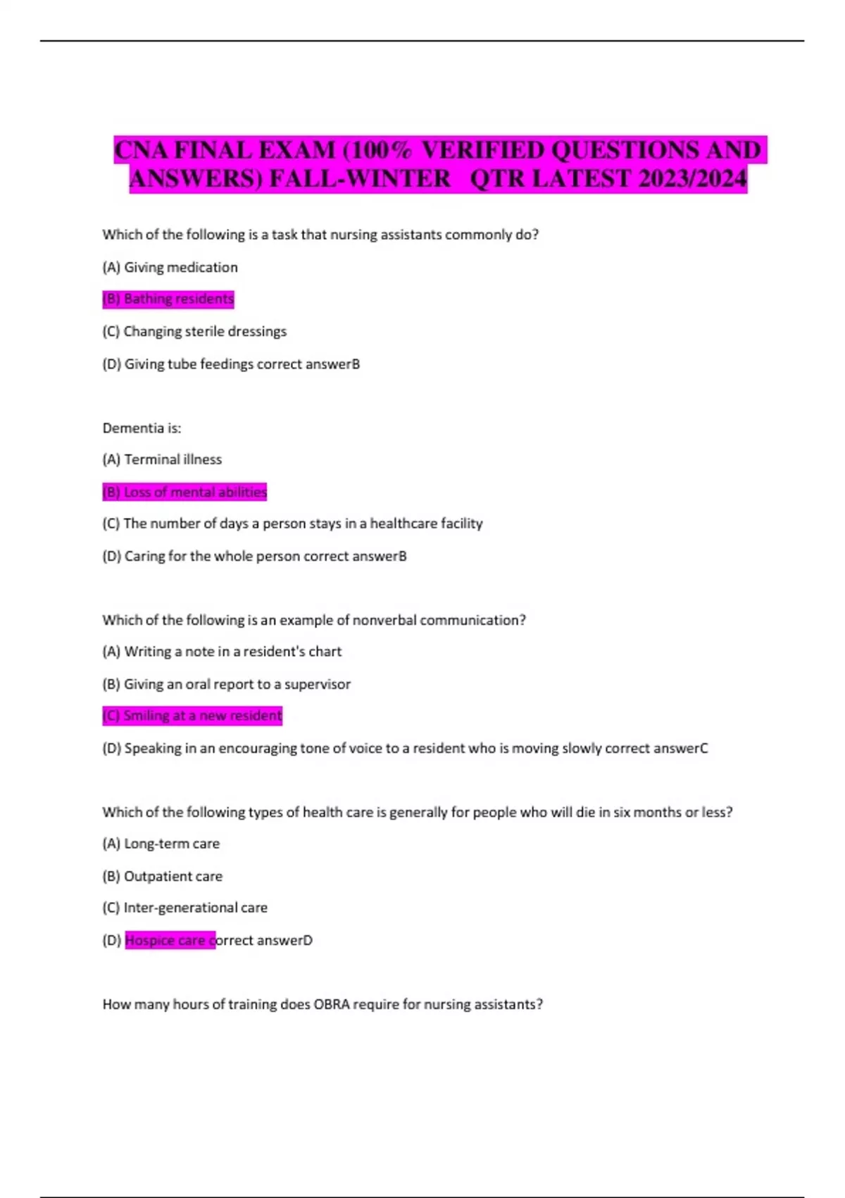 CNA FINAL EXAM (100% VERIFIED QUESTIONS AND ANSWERS) FALL-WINTER QTR LATEST 2023/2024