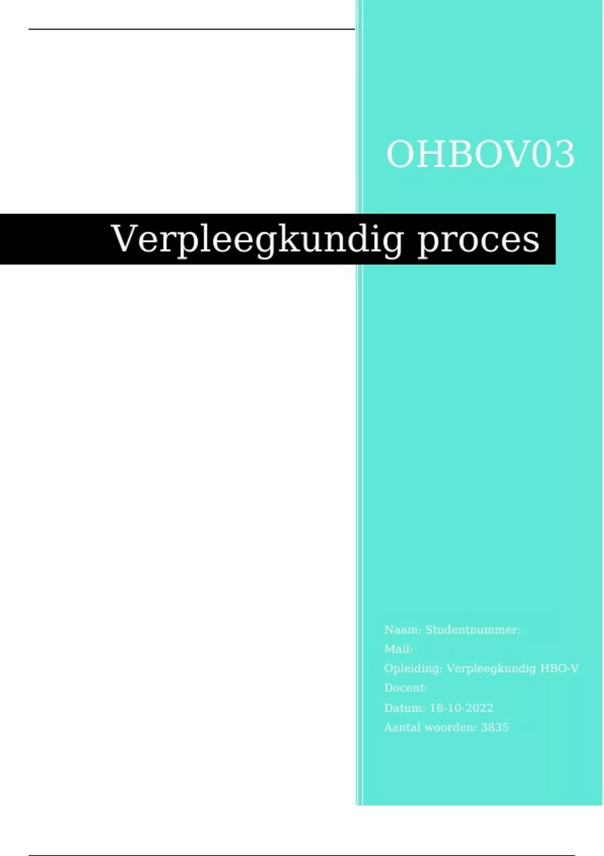 Het verpleegkundige proces wordt in hoofdstuk 1 beschreven. The