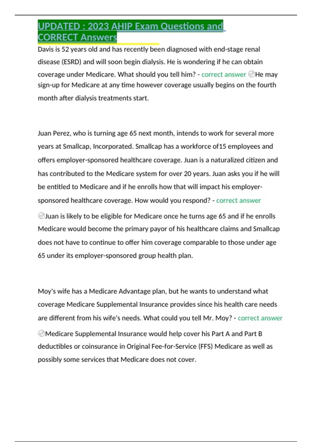 UPDATED : 2023 AHIP Exam Questions and CORRECT Answers