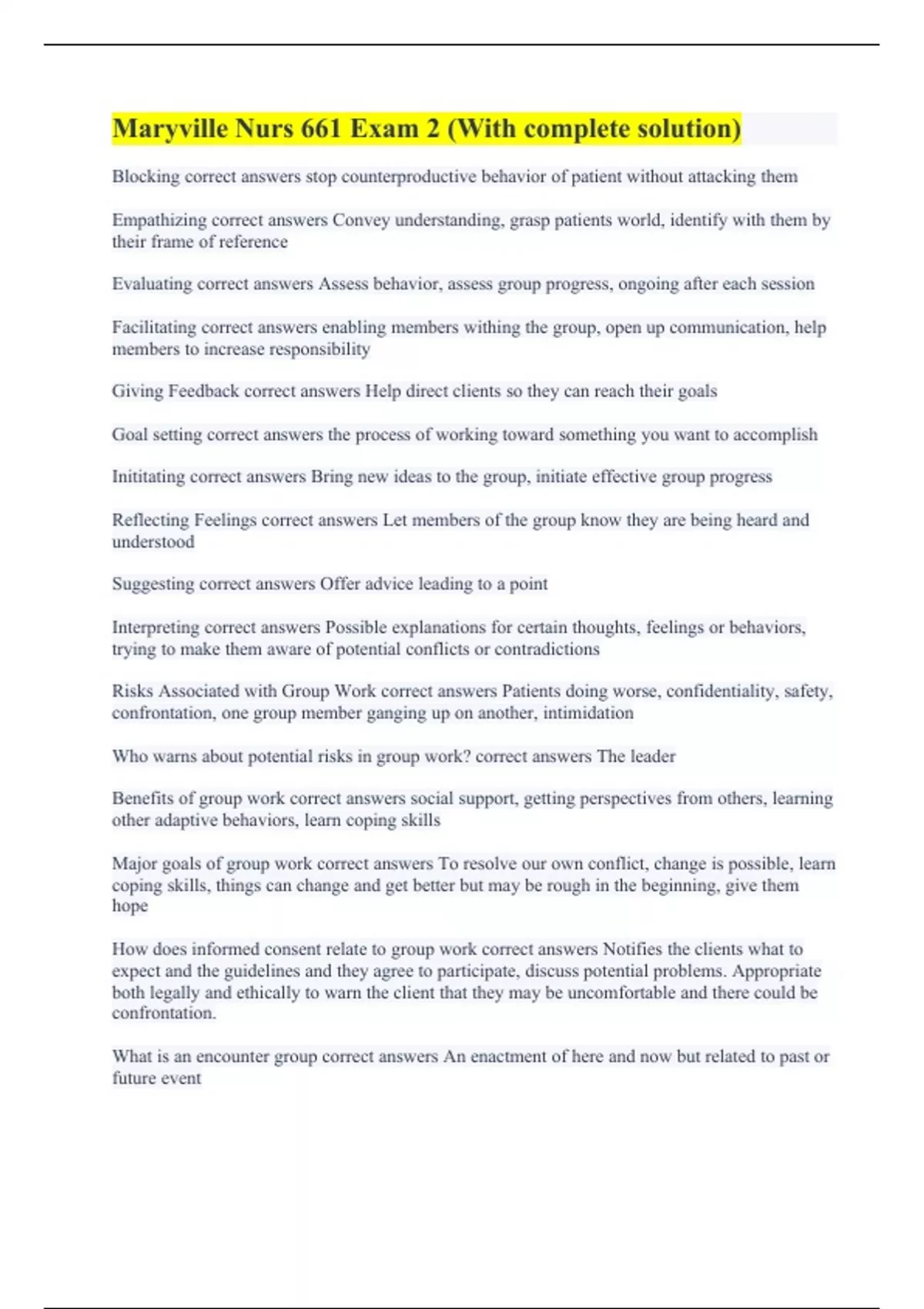 Maryville Nurs 661 Exam 2 (With complete solution)