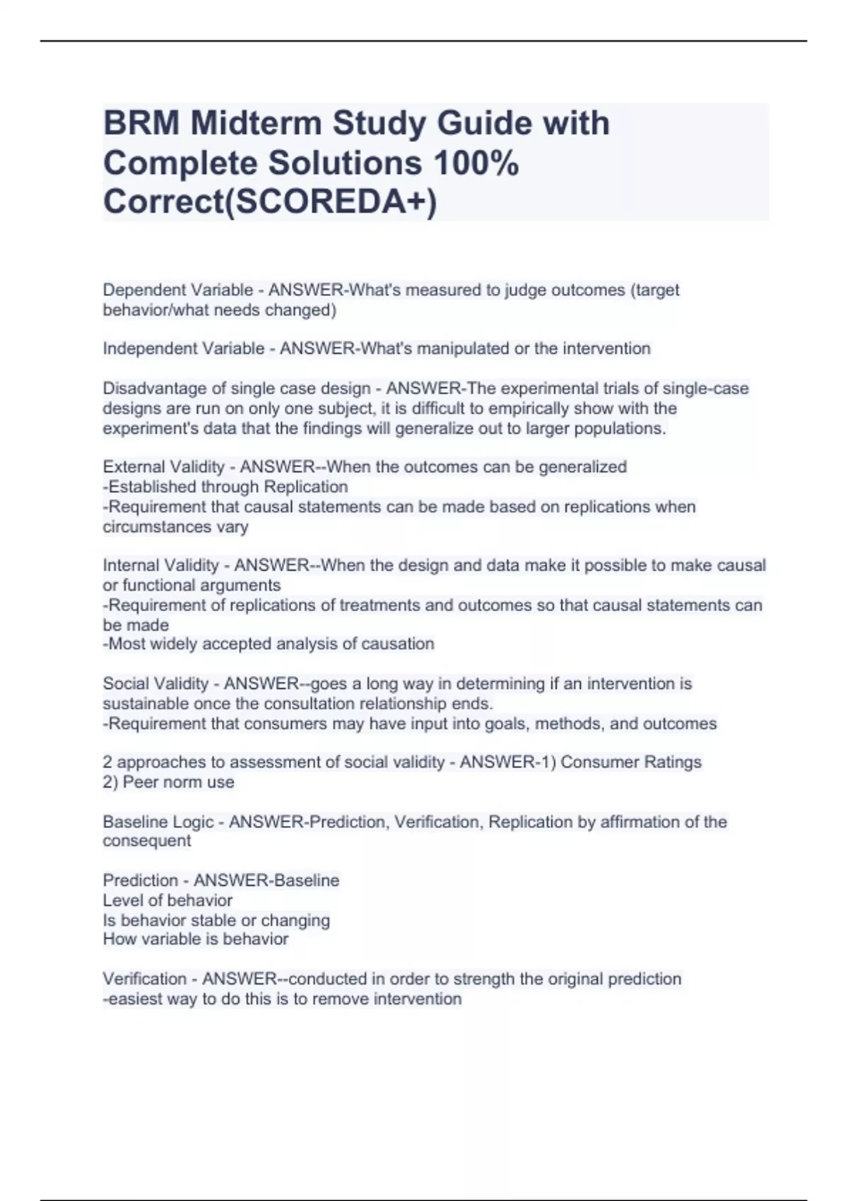 BRM Midterm Study Guide with Complete Solutions 100% Correct(SCOREDA+)