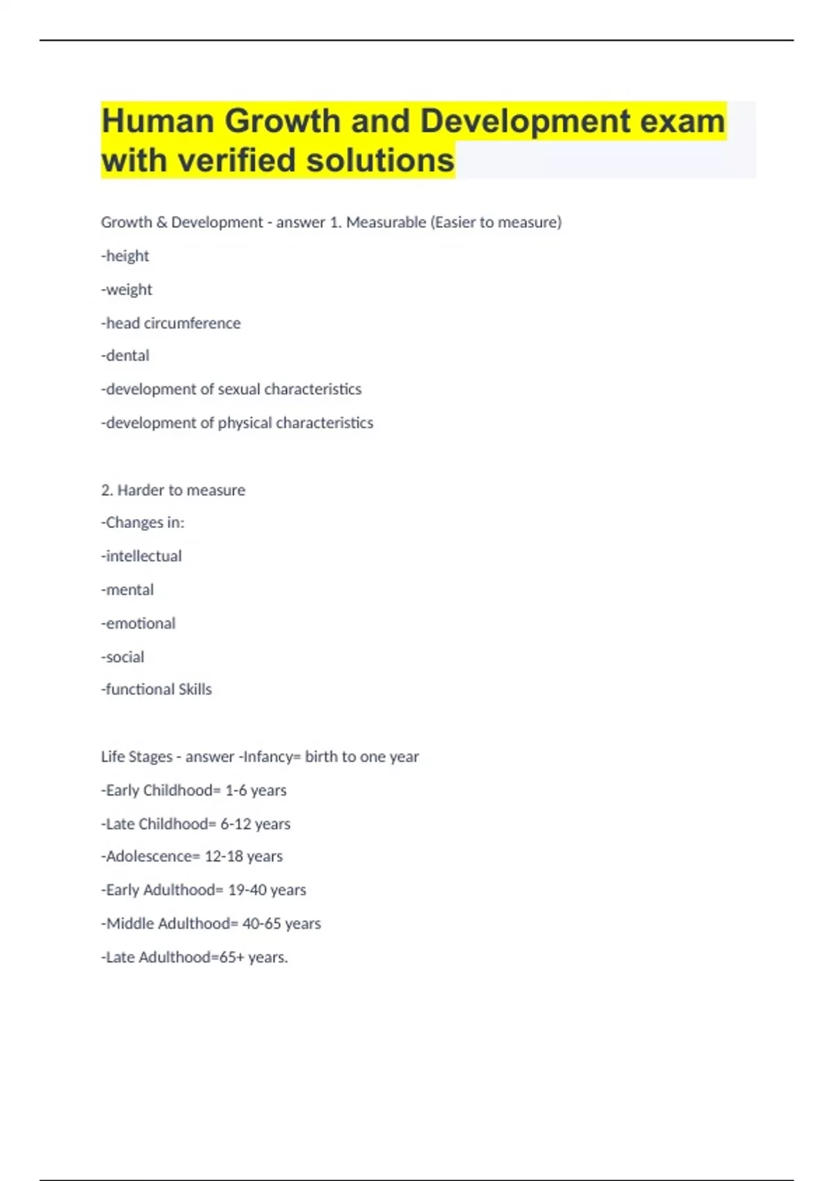 Human Growth and Development exam with verified solutions.