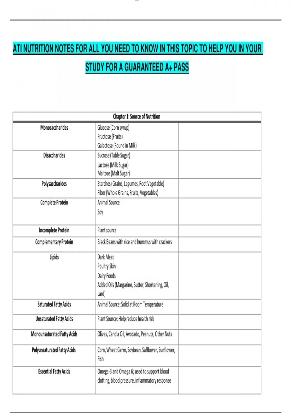 Summary ATI NUTRITION NOTES FOR ALL YOU NEED TO KNOW IN THIS TOPIC TO HELP YOU IN YOUR STUDY FOR A GUARANTEED A+ PASS
