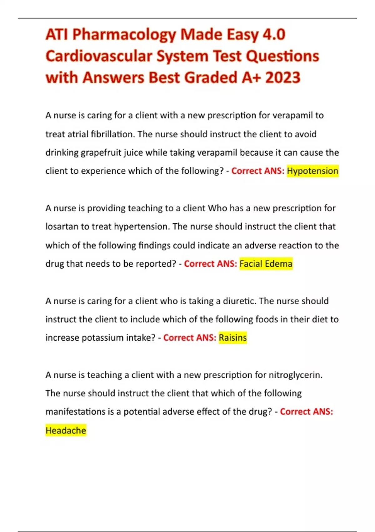 manifestations is a potential adverse effect of the drug? - Correct ANS: