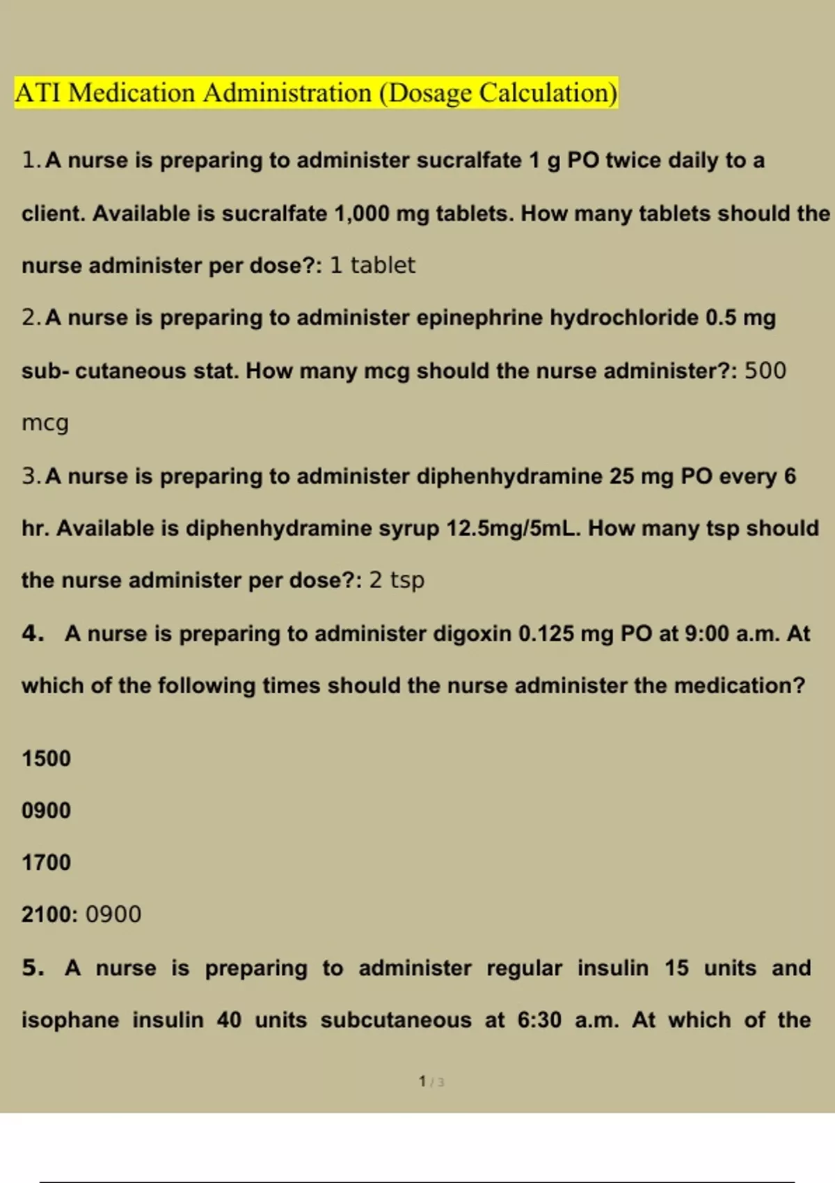 ATI Medication Administration (Dosage Calculation) Latest Questions and Answers (2023/2024) (Verified Answers)