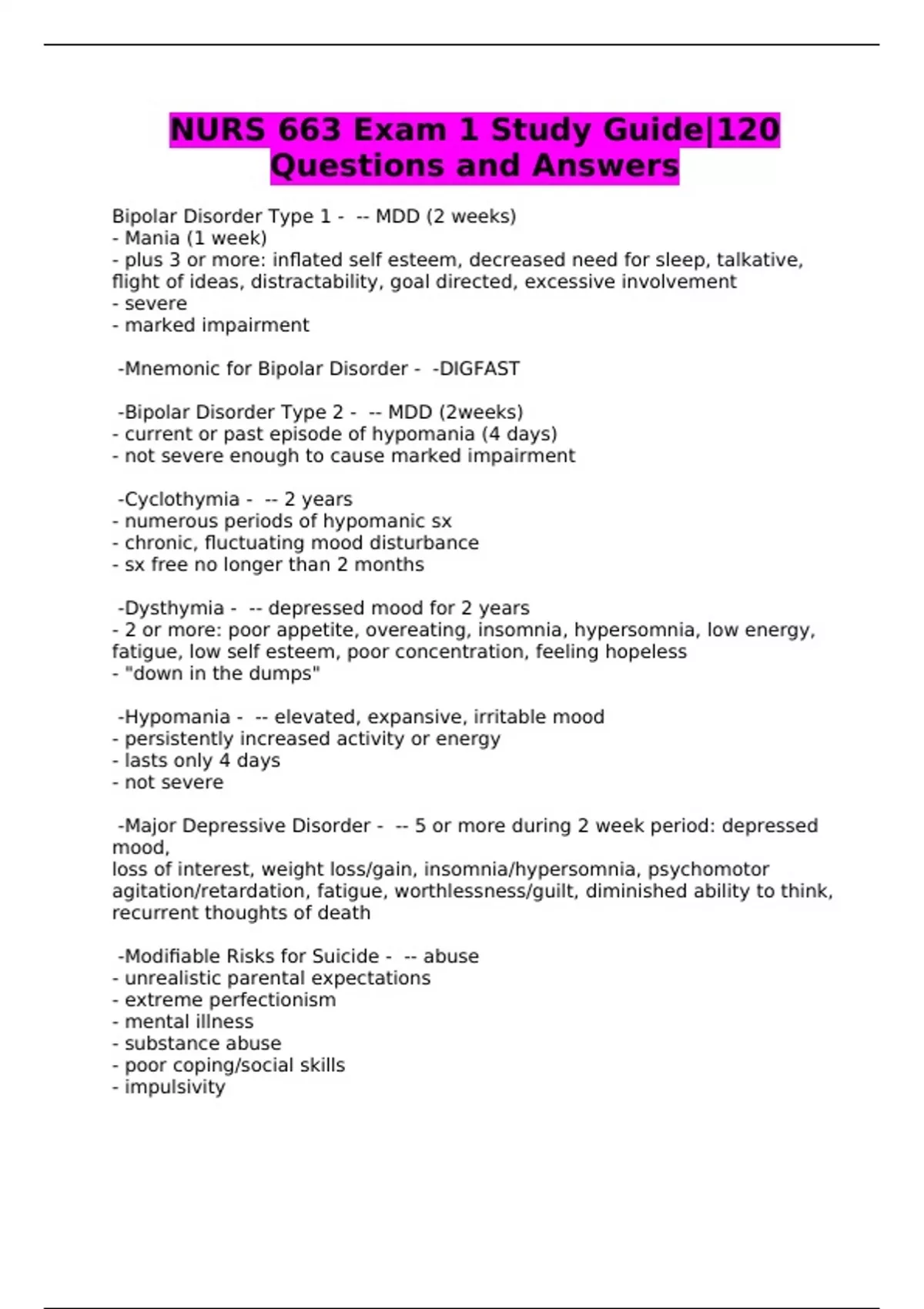 NURS 663 Exam 1 Study Guide|120 Questions and Answers