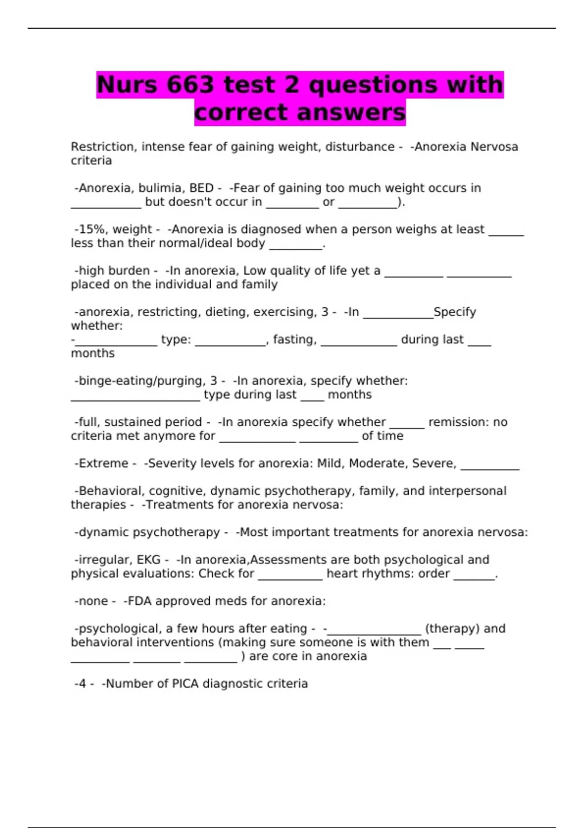 Nurs 663 test 2 questions with correct answers