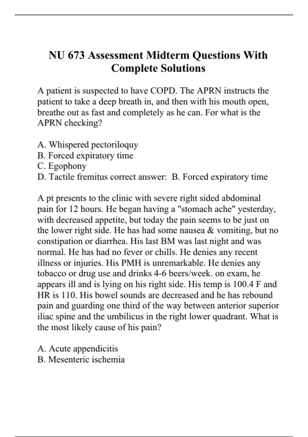 NU 673 Assessment Midterm Questions With Complete Solutions