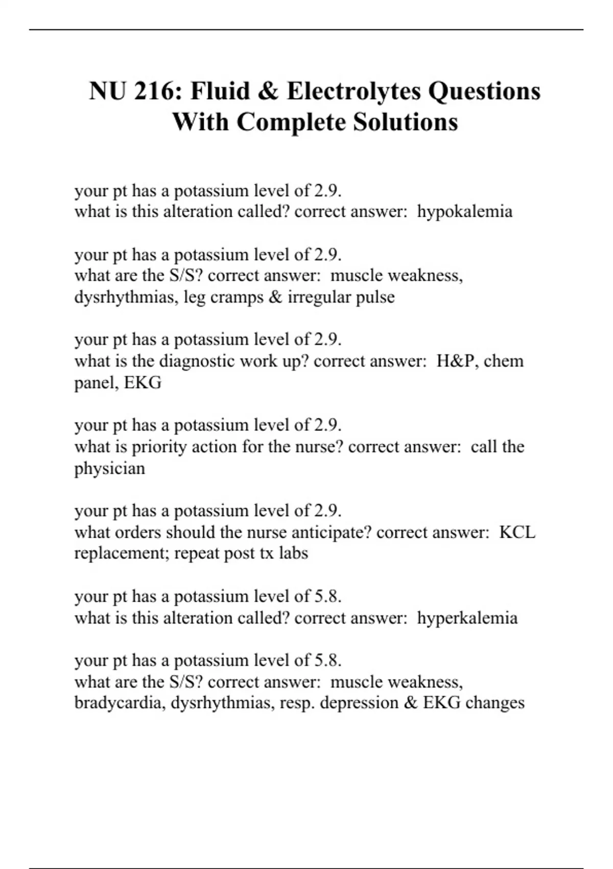NU 216: Fluid & Electrolytes Questions With Complete Solutions