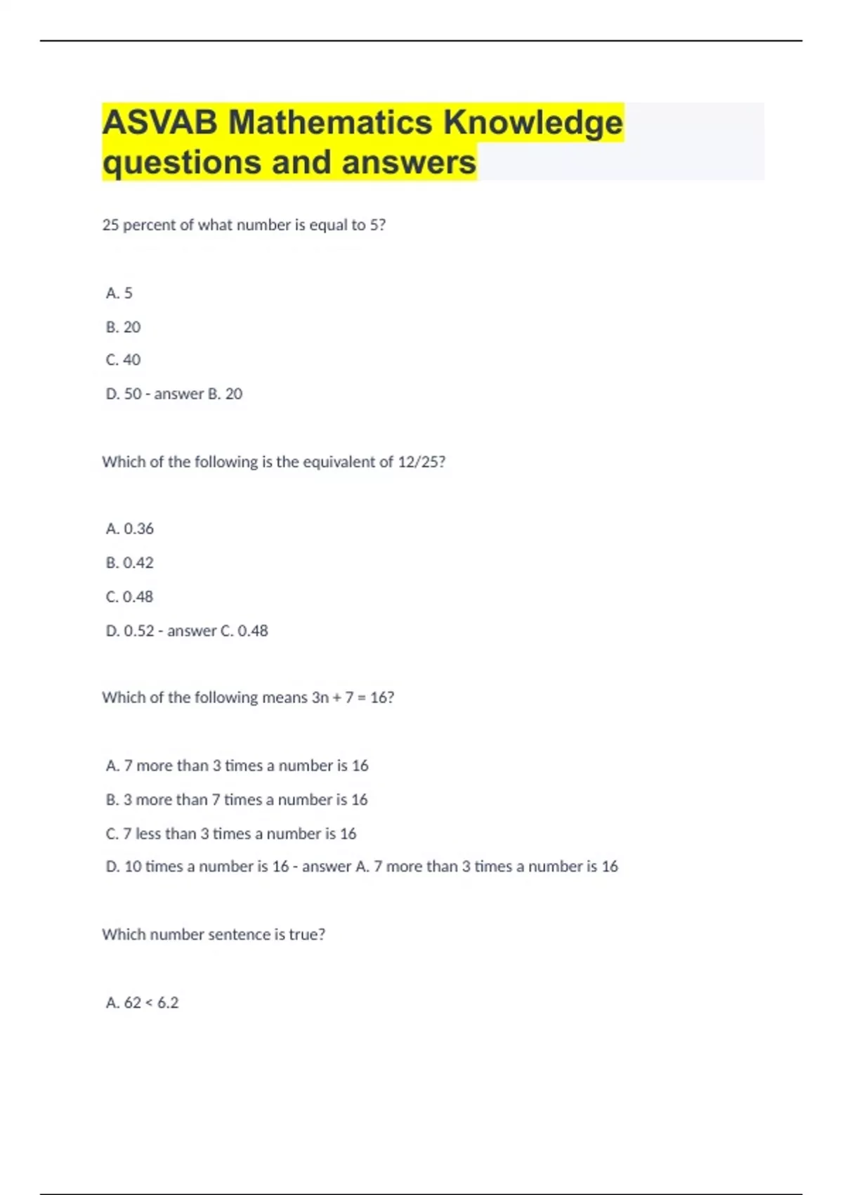 ASVAB Mathematics Knowledge