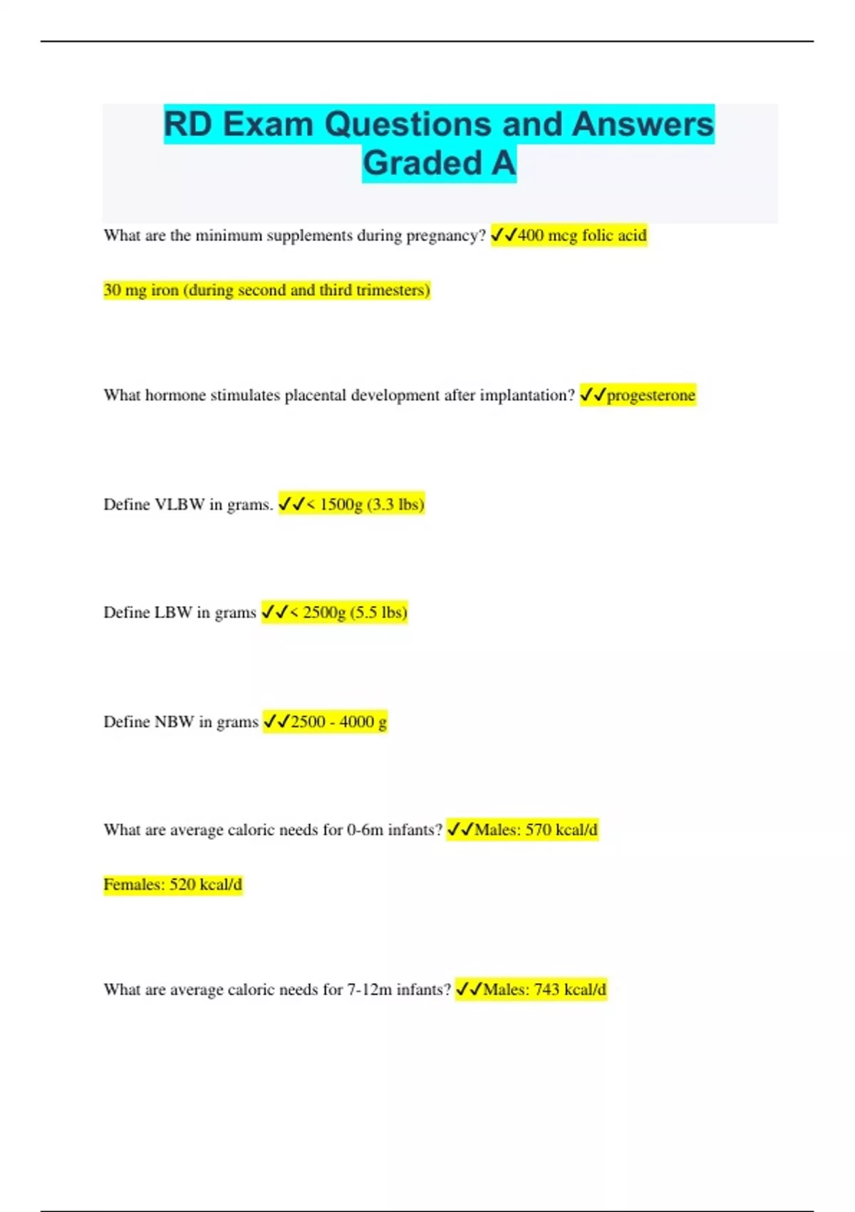 RD Exam Questions and Answers Graded A