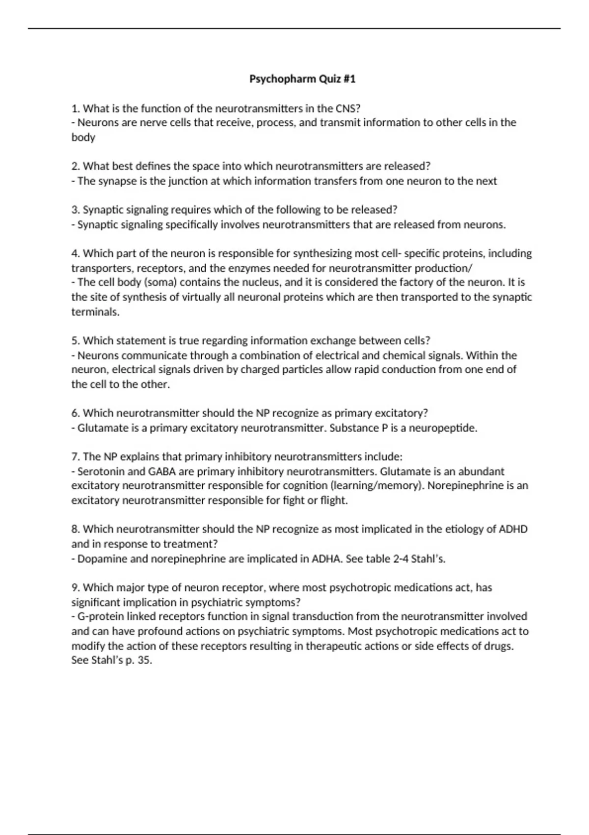 MCPHS Psychopharmacology Quizzes and Final Exam