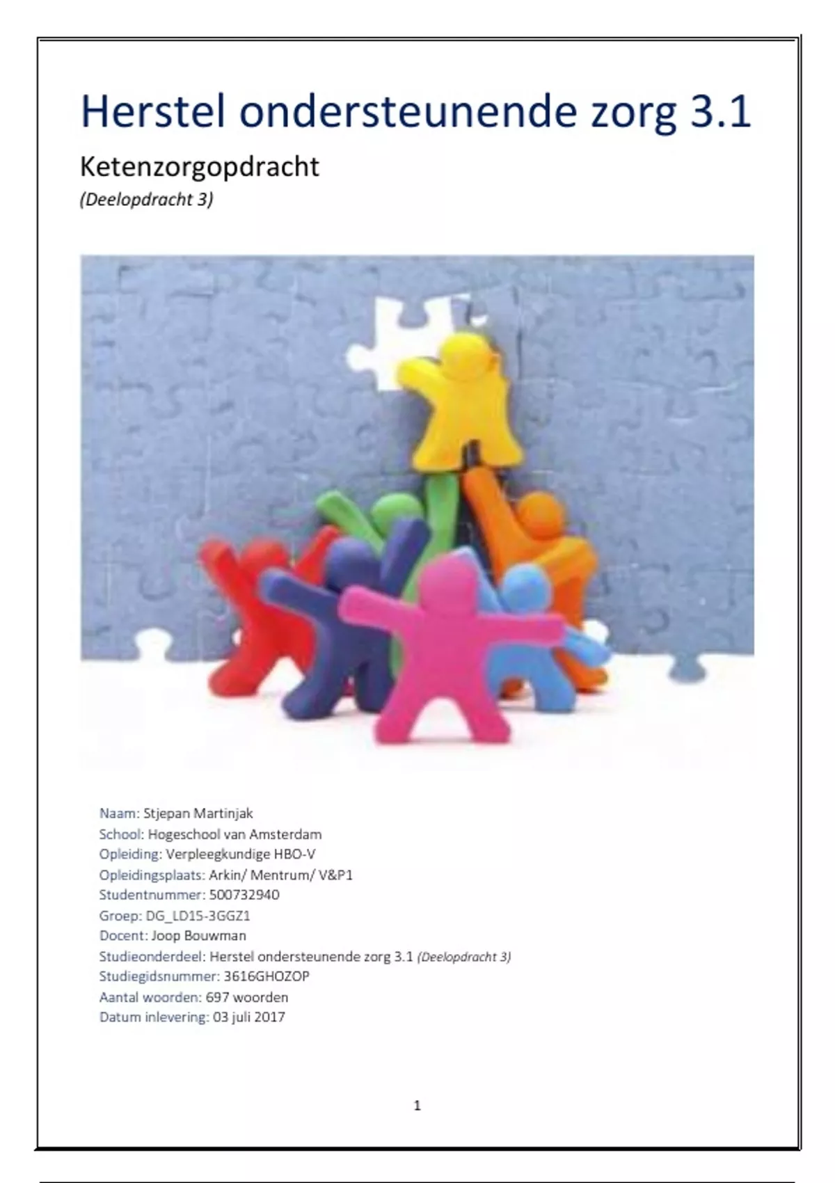 Studieonderdeel: Herstel ondersteunende zorg 3.1 (Deelopdracht 3)