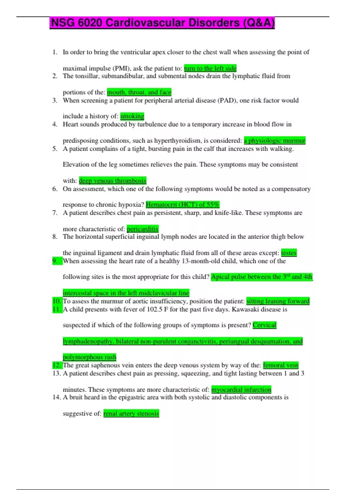 NSG 6020 Cardiovascular Disorders (Q&A)