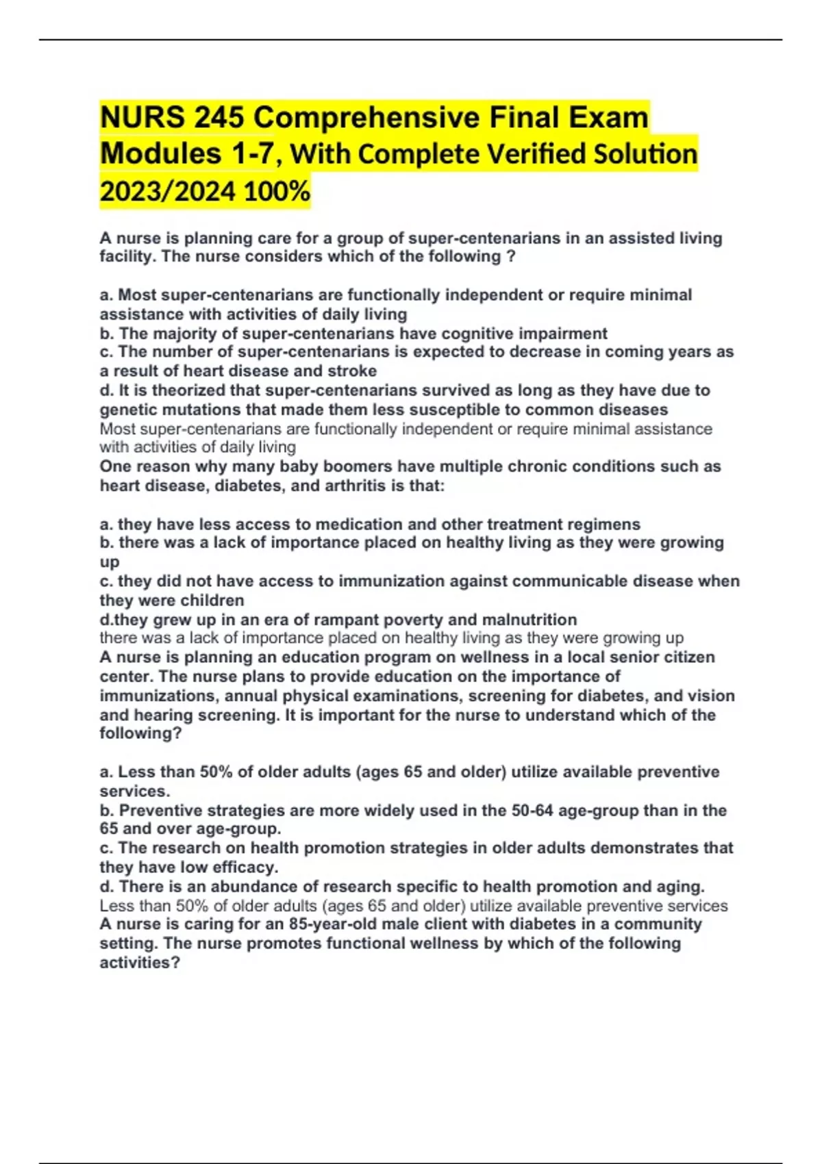 a. Less than 50% of older adults (ages 65 and older) utilize available preventive