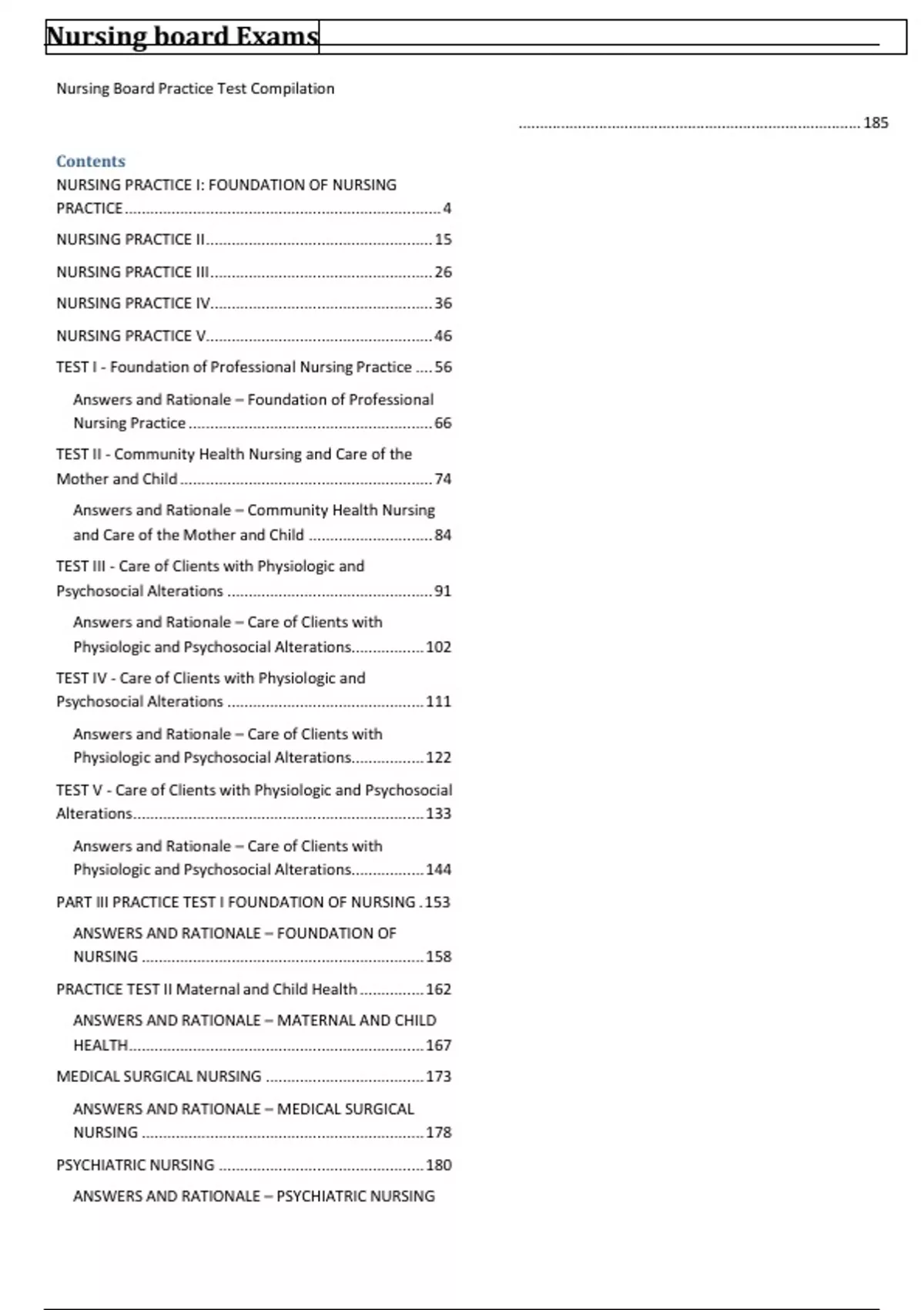 TEST I - Foundation of Professional Nursing Practice .. 255