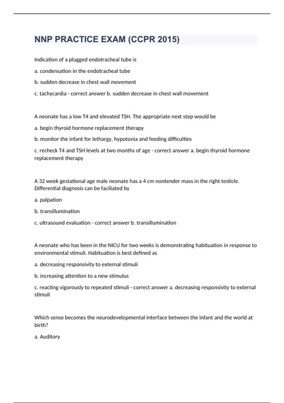 NNP Practice Exam (CCPR) | 175 Questions with 100% Correct Answers | Verified | 44 Pages
