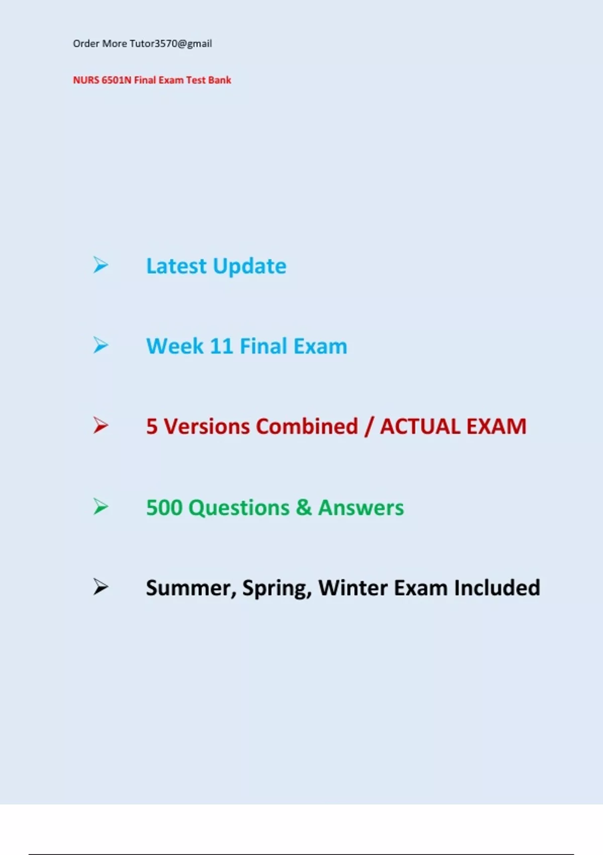 NURS 6501N Final Exam Test Bank Latest Update 2023/2024