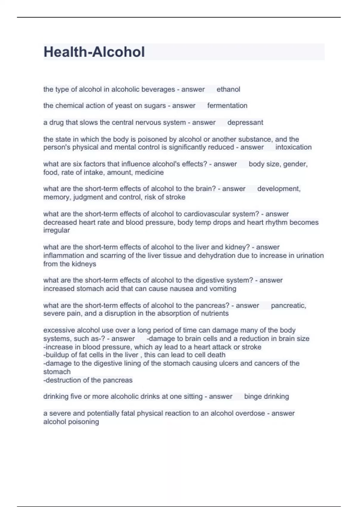 Alcohol Exam Bundle Graded A