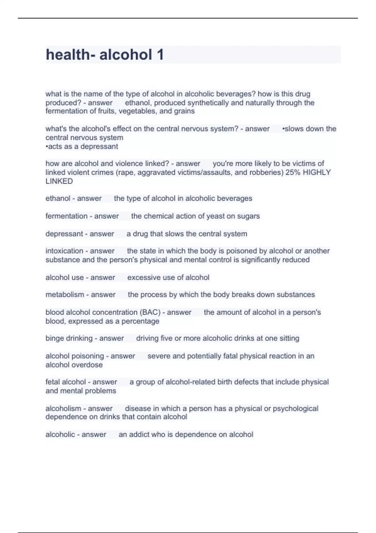 Exam of 2 pages for the course Alcohol at Alcohol (health1)