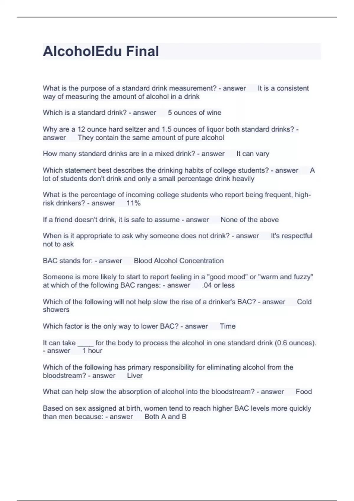 Exam of 3 pages for the course Alcohol at Alcohol (AlcoholEdu Final)