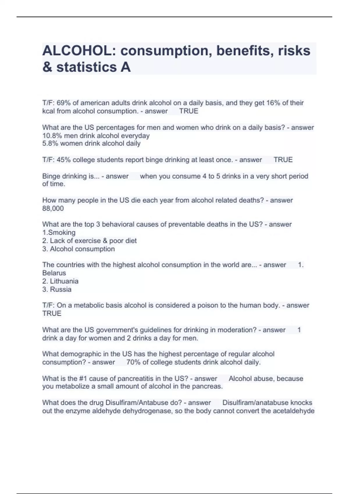 Exam of 3 pages for the course Alcohol at Alcohol (ALCOHOL1)