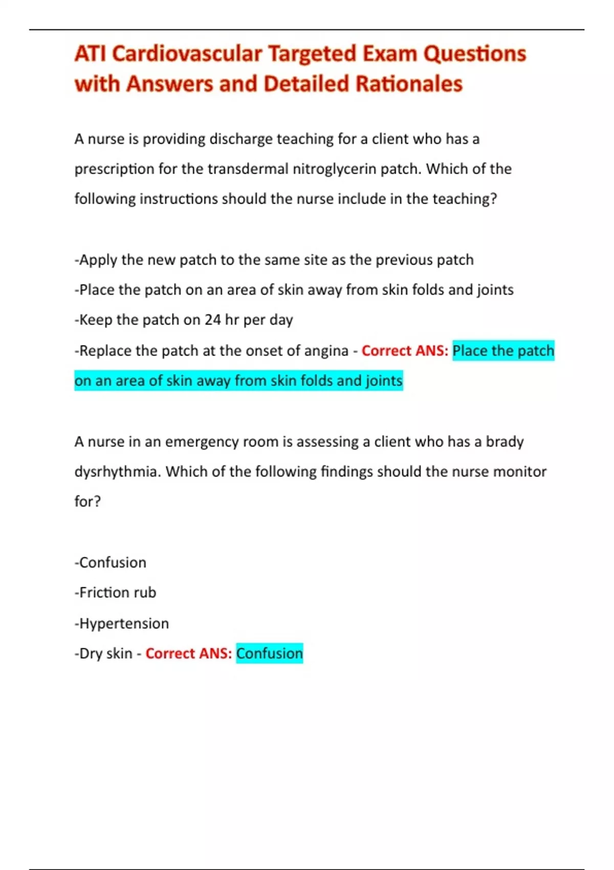 ATI Cardiovascular Targeted Exam Questions with Answers and Detailed Rationales