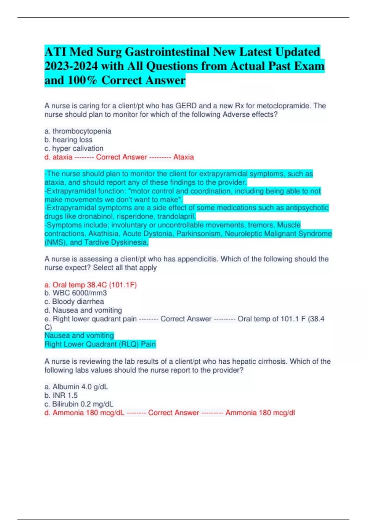 ATI Med Surg Gastrointestinal New Latest Updated with All Questions from Actual Past Exam and 100% Correct Answer