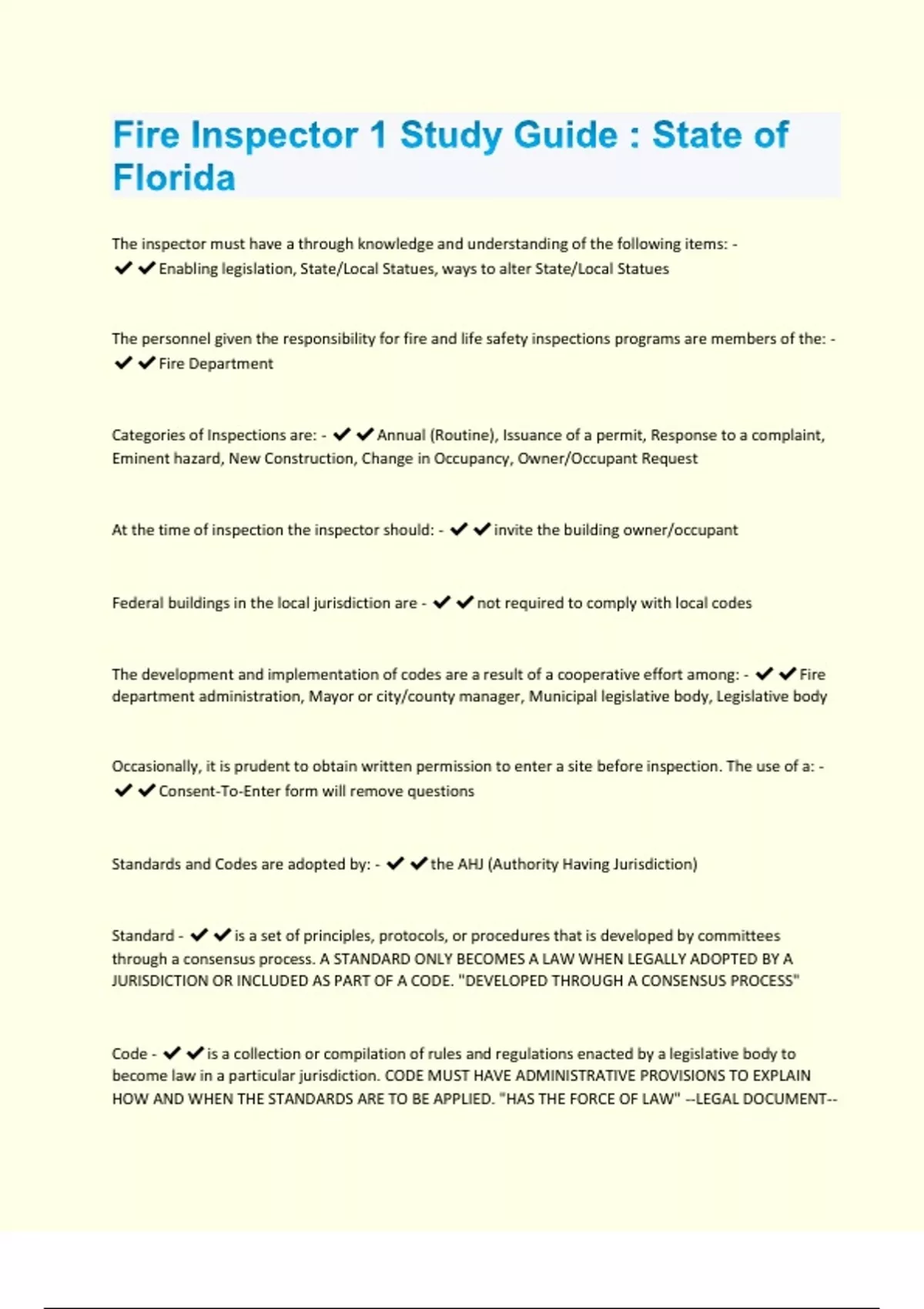 Fire Inspector 1 Study Guide : State of Florida | 453 Questions and Answers(A+ Solution guide)