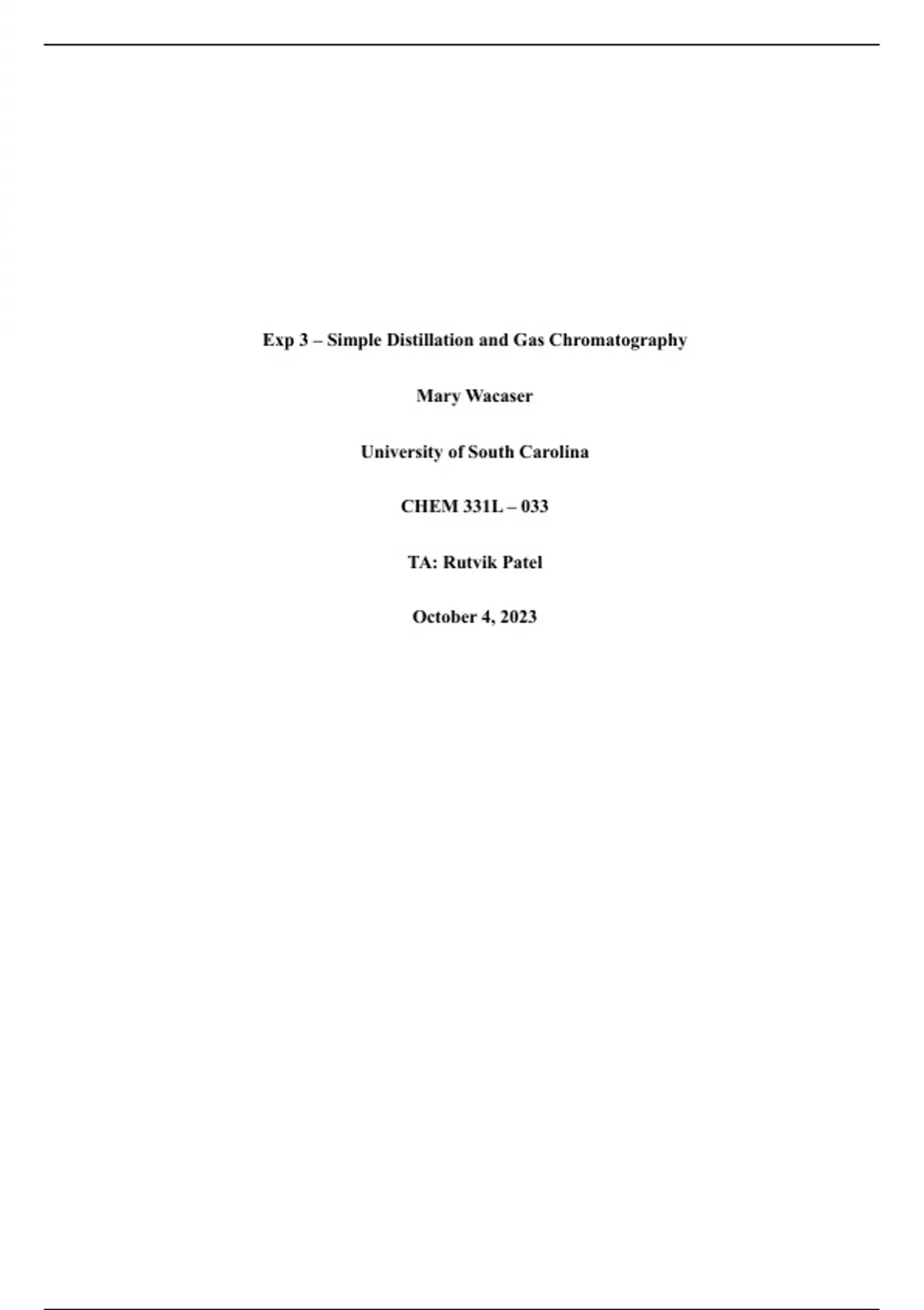 Organic Chemistry Experiments 1-2 Pre and Psot Lab, and Pre-Lab 3