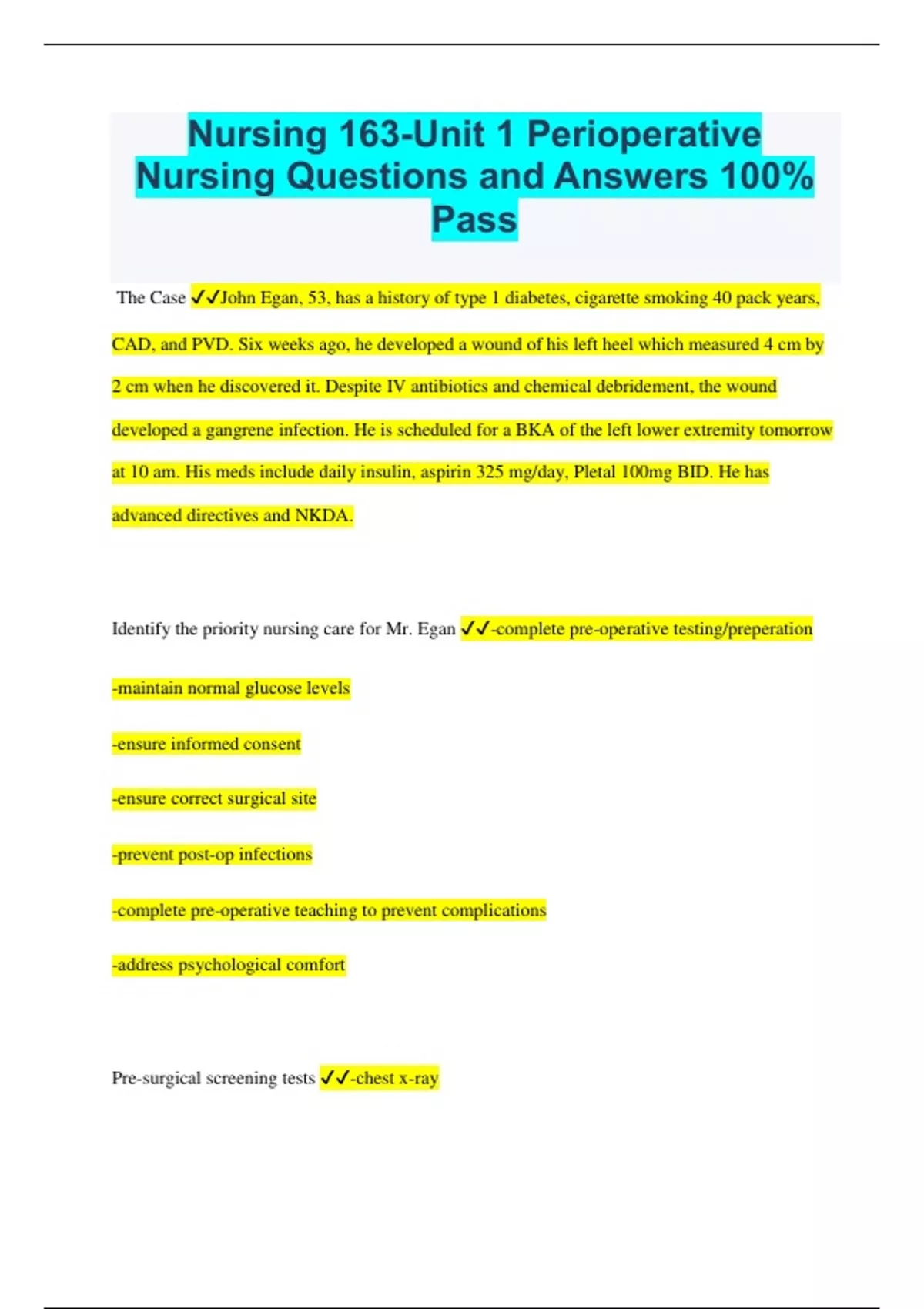 Nursing 163-Unit 1 Perioperative Nursing Questions and Answers 100% Pass