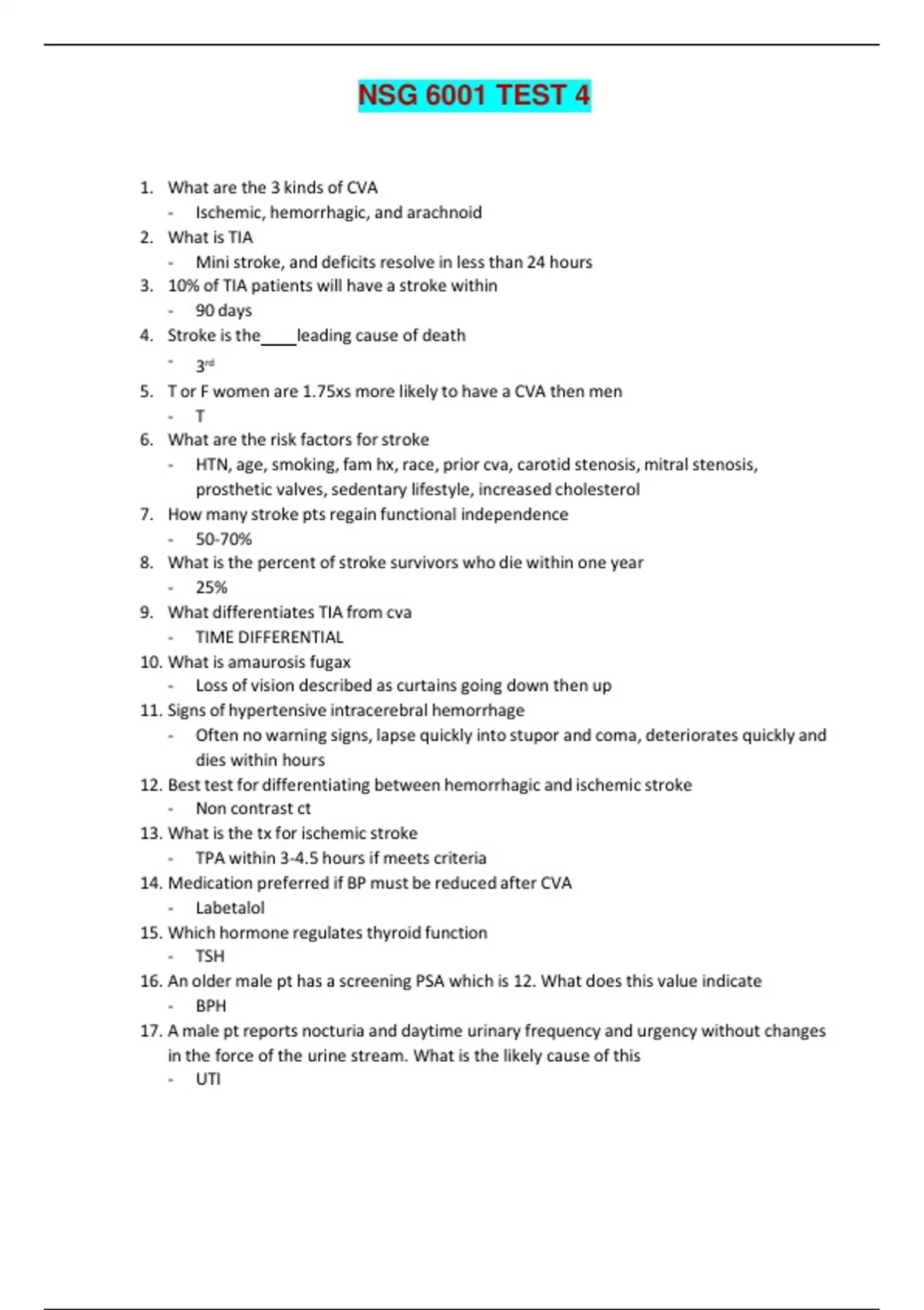 NSG 6001 ADVANCE NURSING PRACTICE I | NSG 6001 TEST 4 - QUESTIONS AND ANSWERS