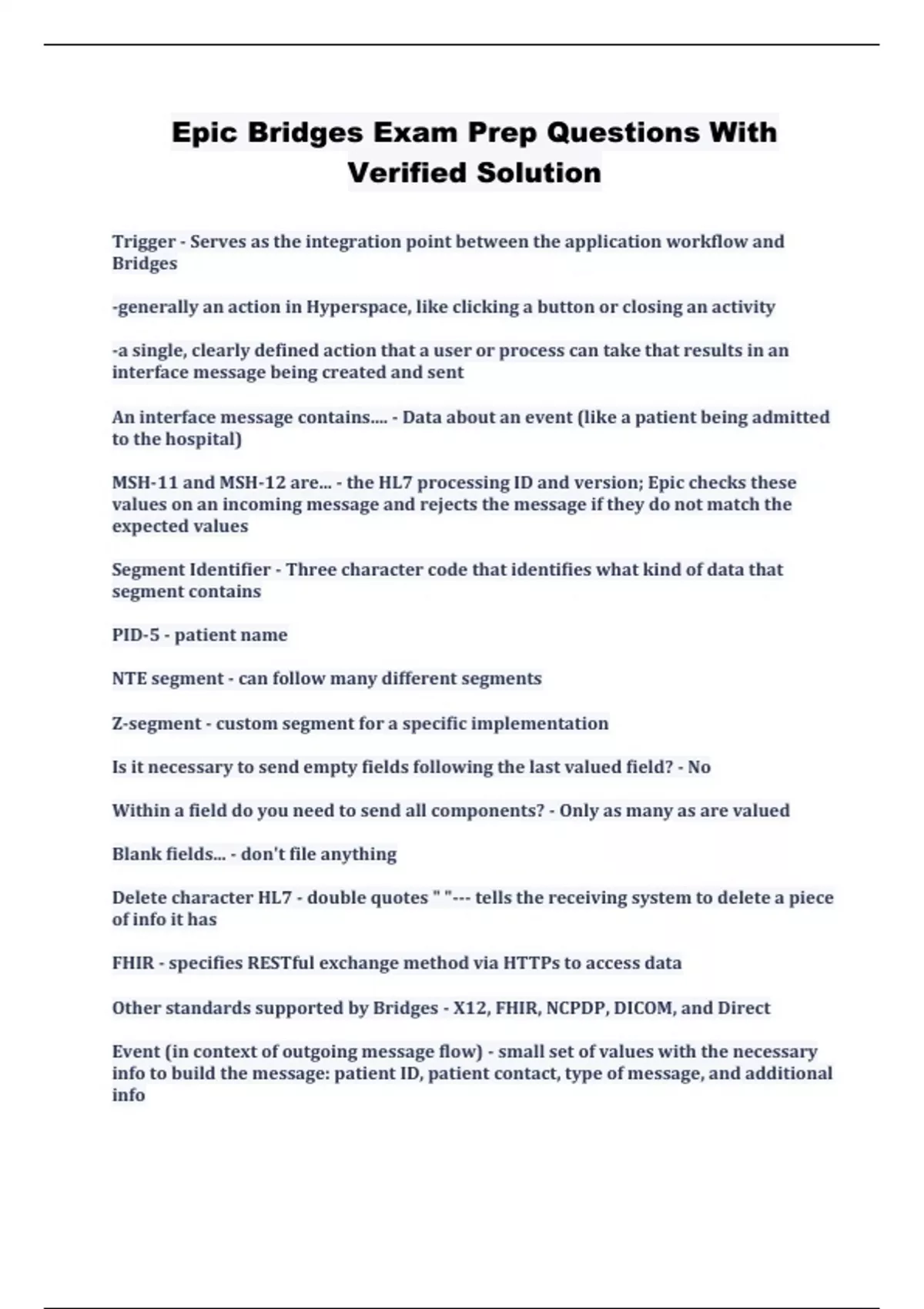 epic bridges exam prep questions with verified sol