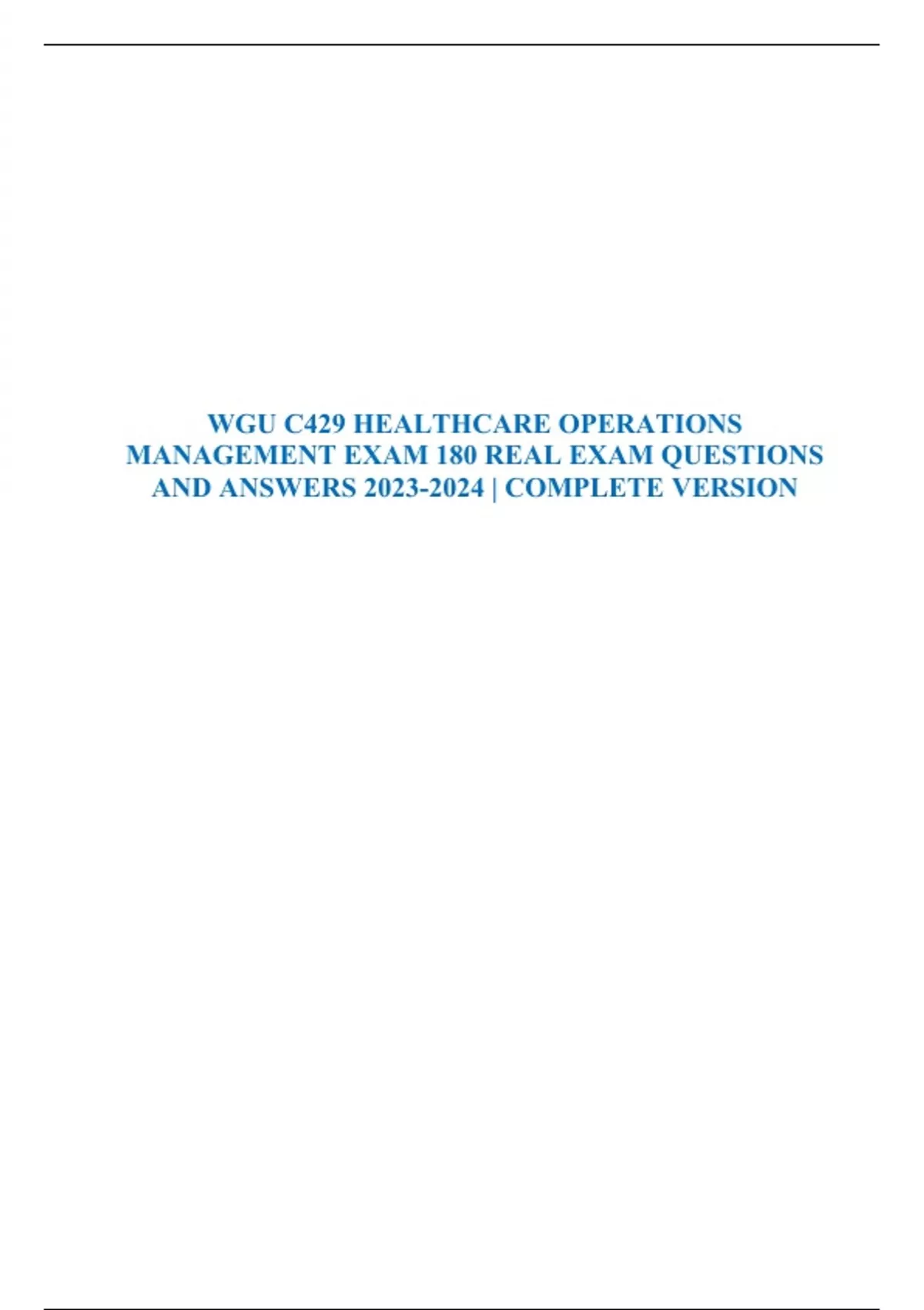 WGU C429 HEALTHCARE OPERATIONS MANAGEMENT EXAM 180 REAL EXAM QUESTIONS AND ANSWERS | COMPLETE VERSION