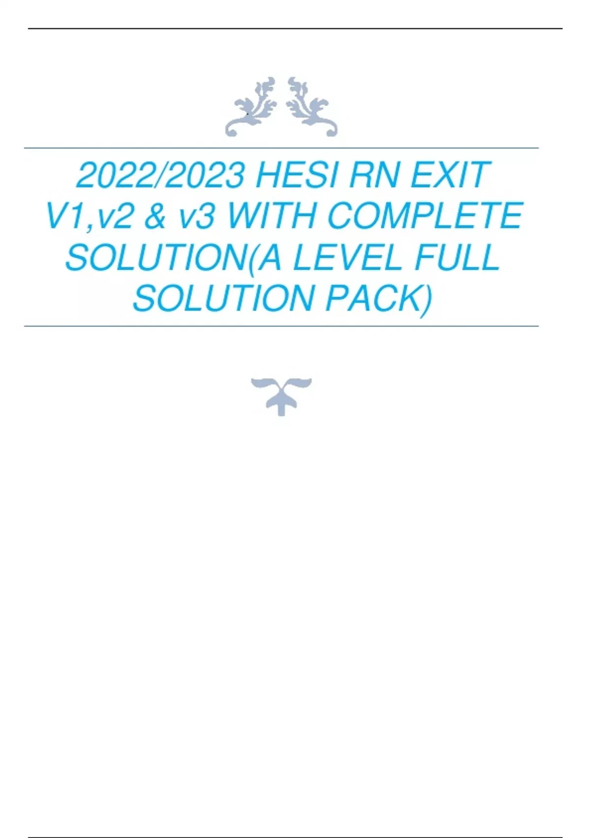 2023 COMMUNITY HEALTH HESI RN V1,V2&V3 (3 LATESTVERSIONS ) EXIT HESI EACH VERSION CONTAINS 55 QUESTIONS AND CORRECT ANSWERS|TEST BANK|AGRADE
