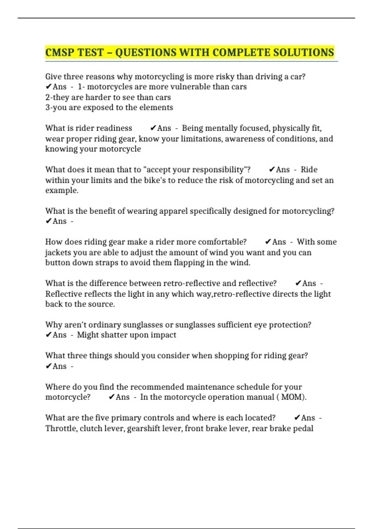 CMSP TEST – QUESTIONS WITH COMPLETE SOLUTIONS