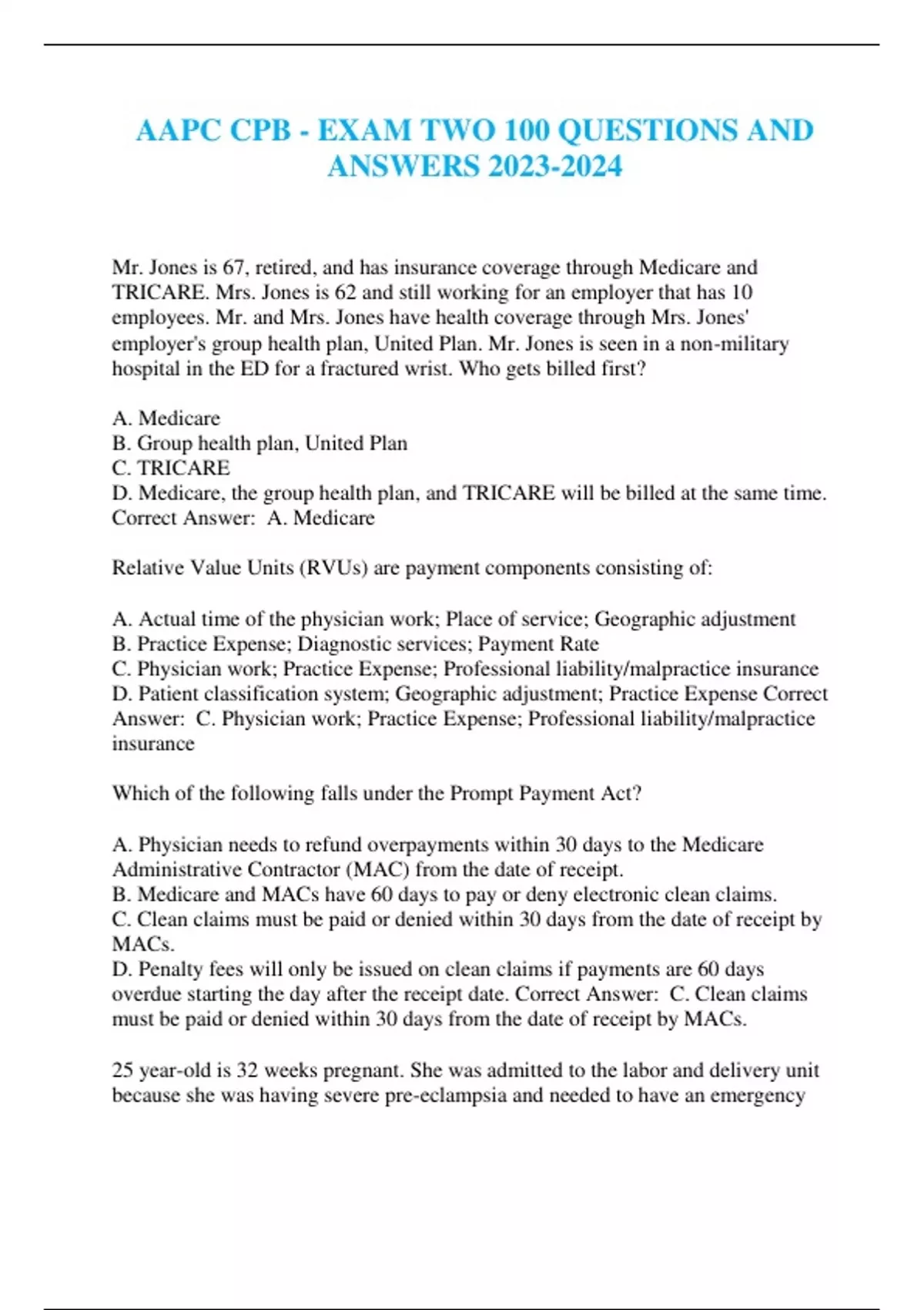 AAPC CPB - EXAM TWO 100 QUESTIONS AND ANSWERS