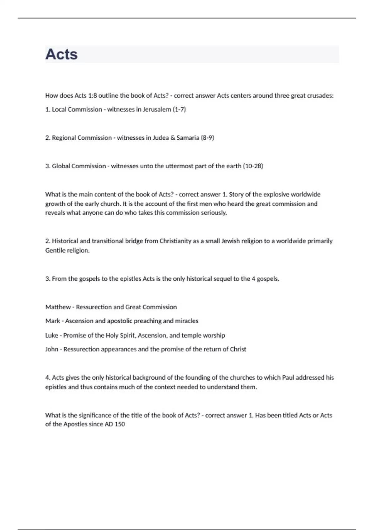 Exam of 12 pages for the course ACTS at ACTS (Acts)