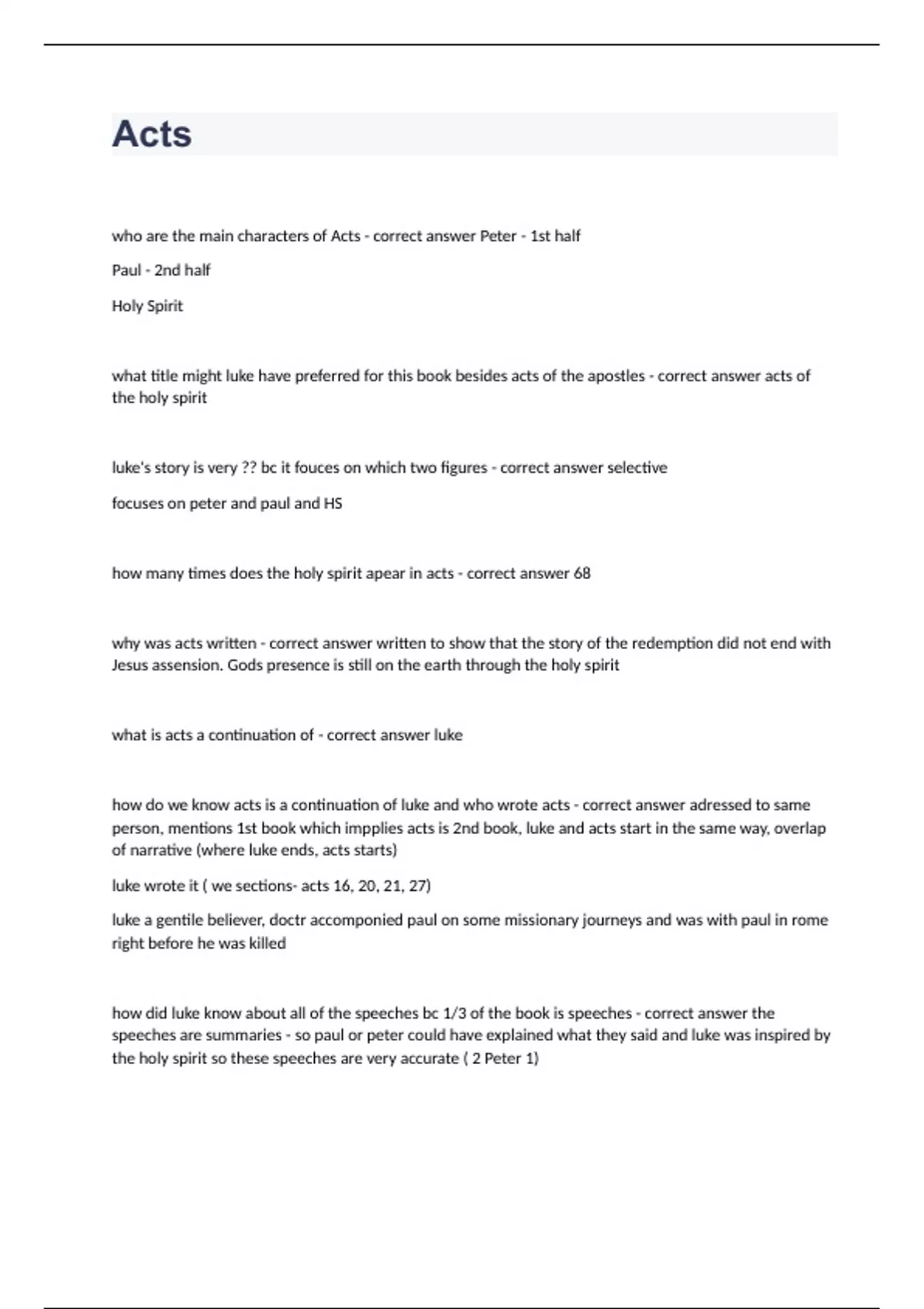 Exam of 14 pages for the course ACTS at ACTS (Acts)