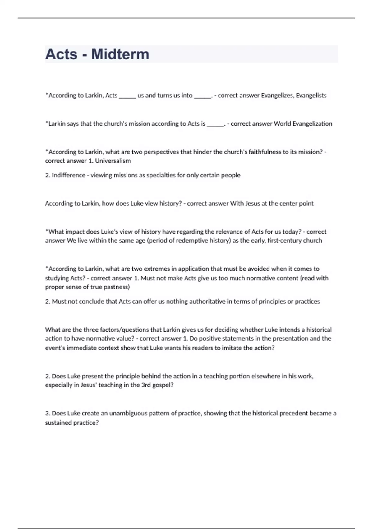 Acts - Midterm question well answered graded A+ 2023
