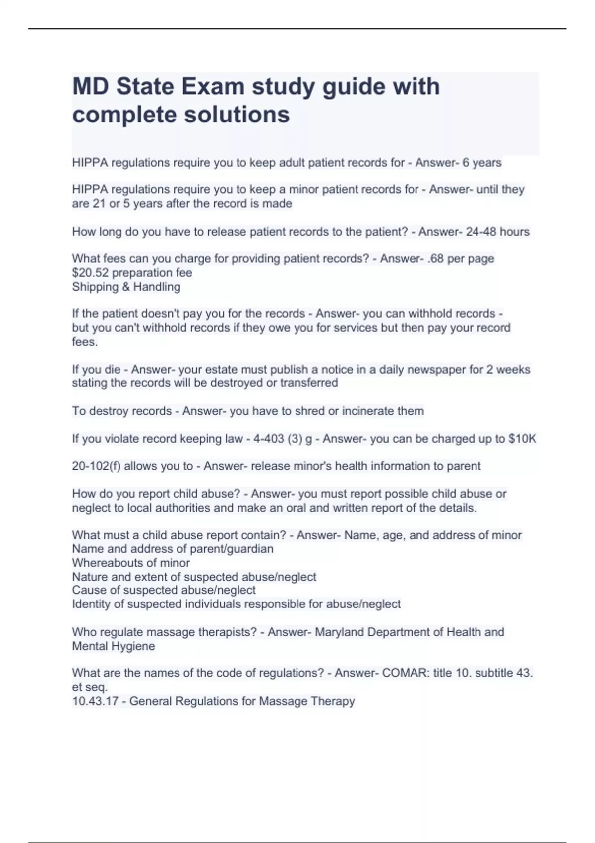 MD State Exam study guide with complete solutions