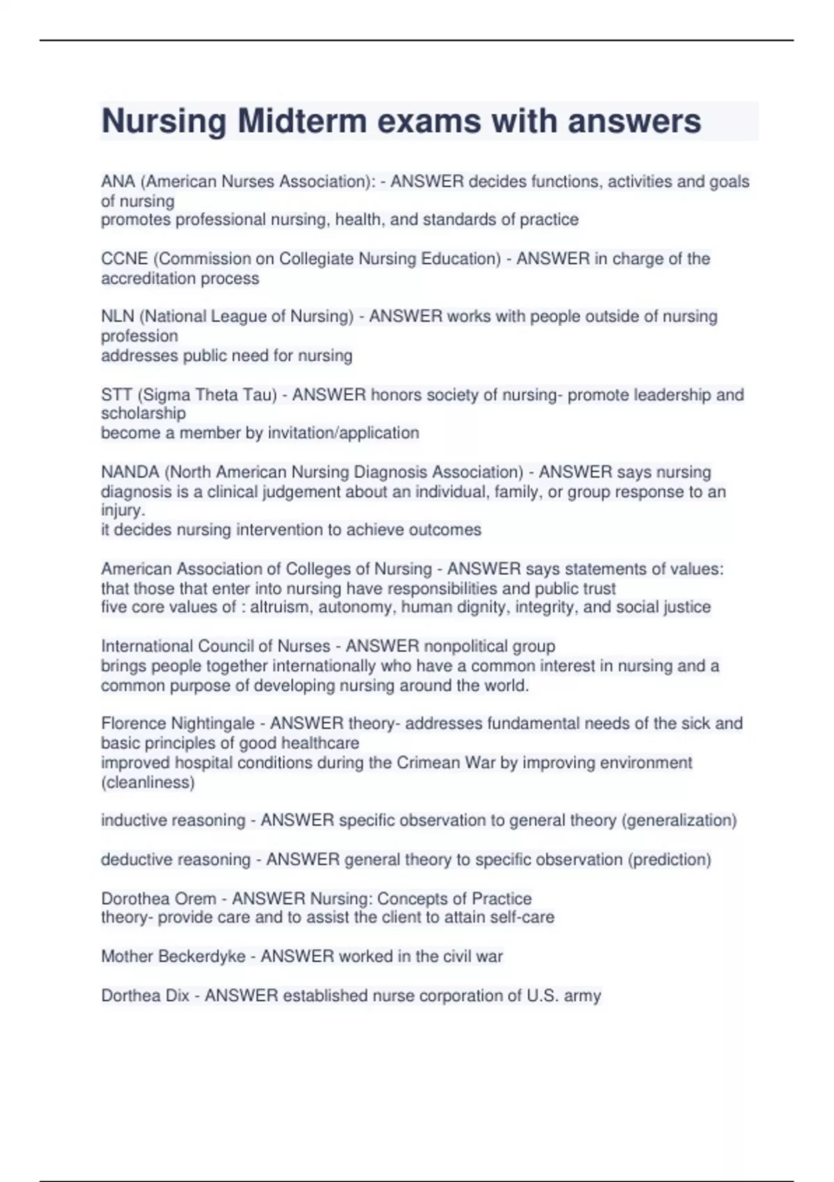 Nursing Midterm exams with answers