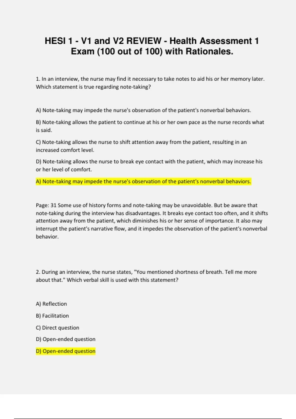 Exam (100 out of 100) with Rationales.