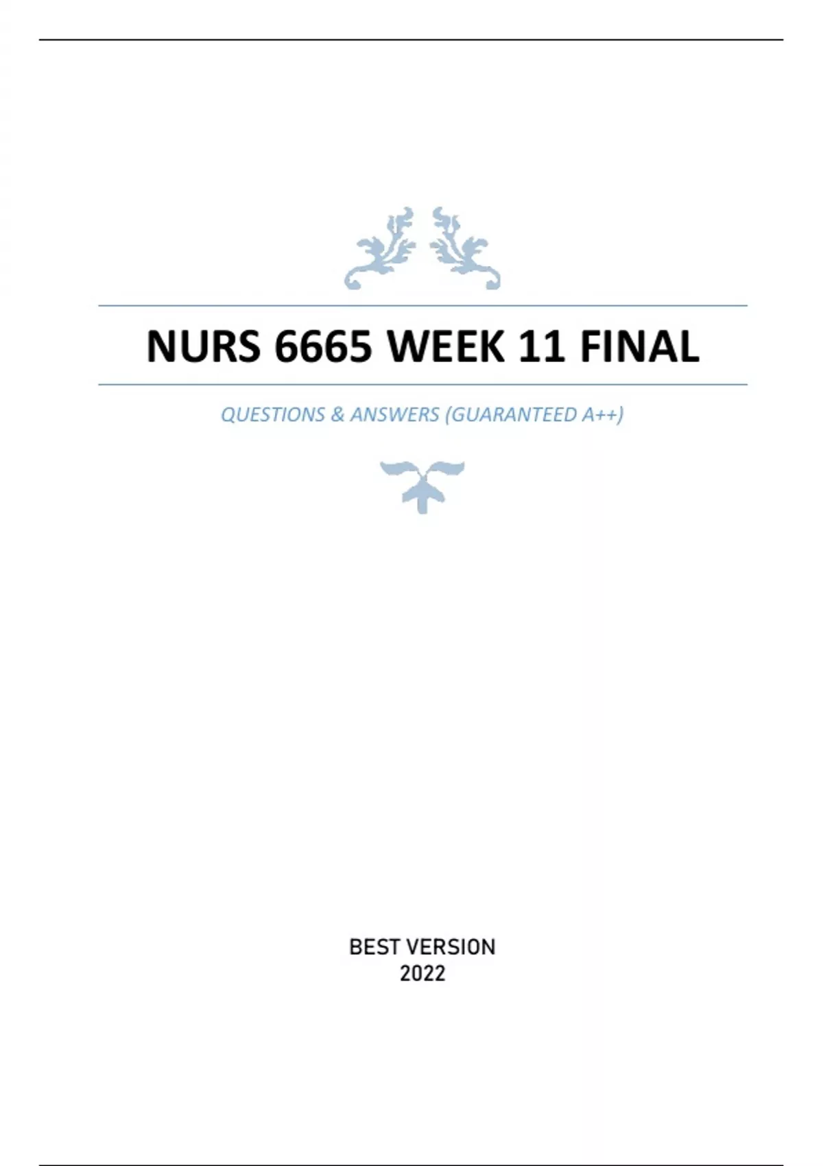 NURS 6665 WEEK 11 FINAL EXAM - (GUARANTEED 98%) QUESTIONS & ANSWERS VERSION 2022