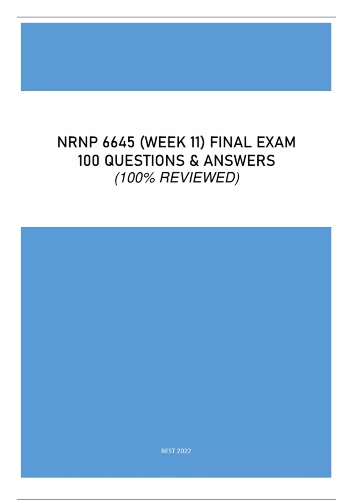 NRNP 6645 (WEEK 11) FINAL EXAM - (SCORED 97%) 100 QUESTIONS & ANSWERS 100% REVIEWED 2022 VERSION