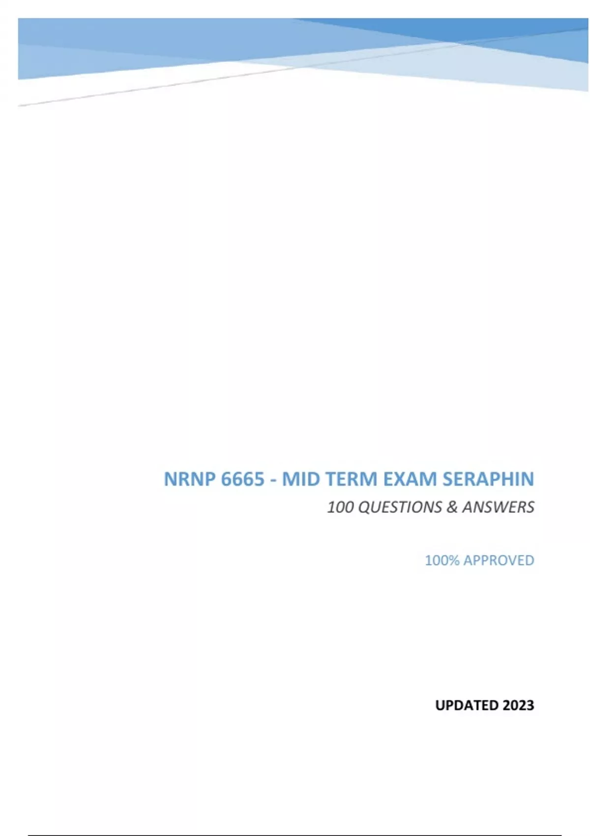 NRNP 6665 - MIDTERM EXAM SERAPHIN - (GRADED 96%) 100 QUESTIONS & ANSWERS 100% APPROVED UPDATED 2023