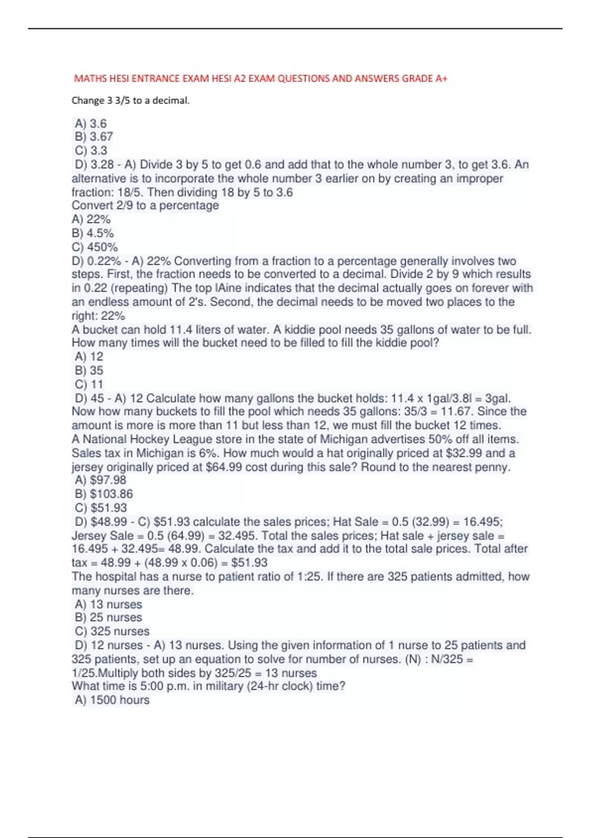 MATHS HESI ENTRANCE EXAM HESI A2 EXAM QUESTIONS AND ANSWERS GRADE A