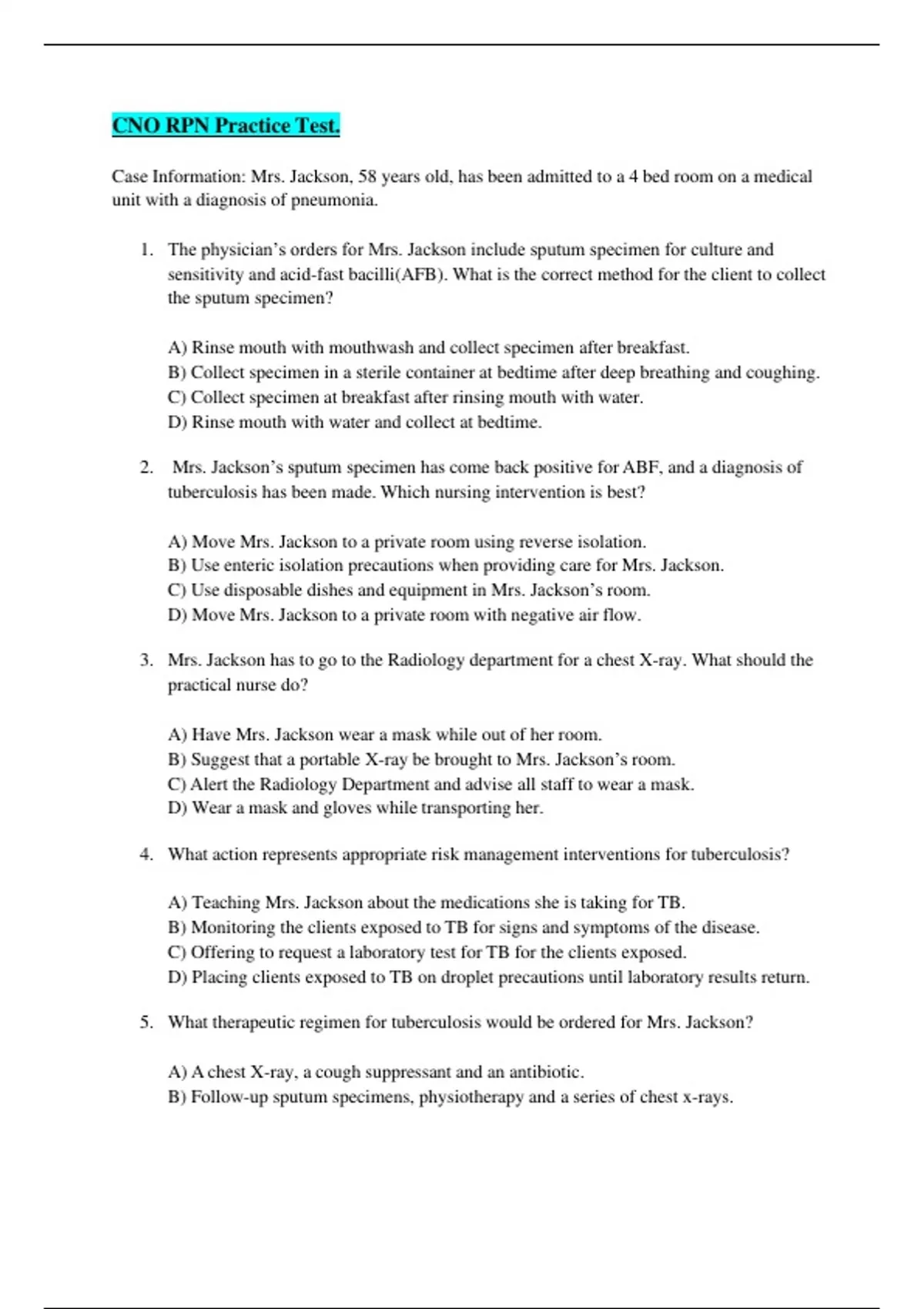 CNO RPN Practice Test Answered